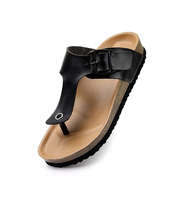 Unisex Cork Adjustable Buckle Straps Cork Sandals (Black, 6)